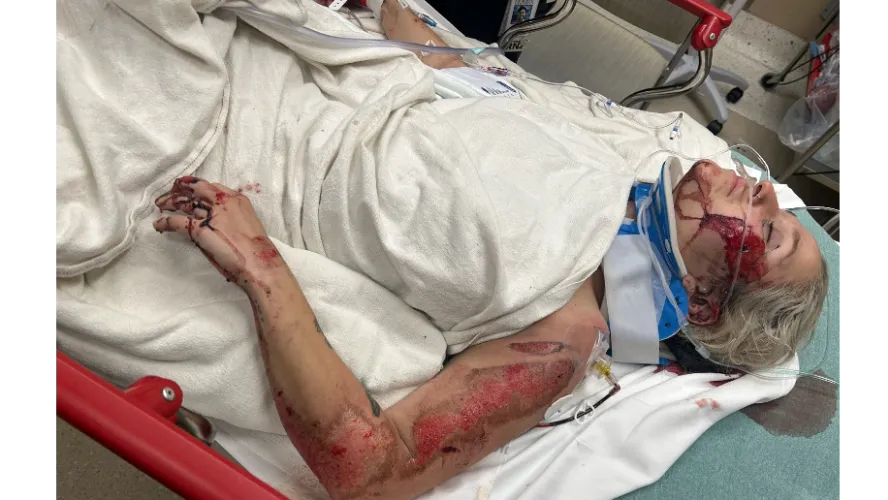 Megan’s injuries are extensive: a four-inch deep laceration to her head with part of her scalp and hair torn out, a ruptured artery outside her skull, a hole in her cheek, a torn tendon in her left hand, nerve damage and severe road rash down to the bone in her left hand, and extensive road rash across her hip, back, and body. She spent six days in the hospital and is now recovering at home, still on two antibiotics as debris continues to surface from her wounds. Surgery on her hand may still be required, and her healing journey will be long.