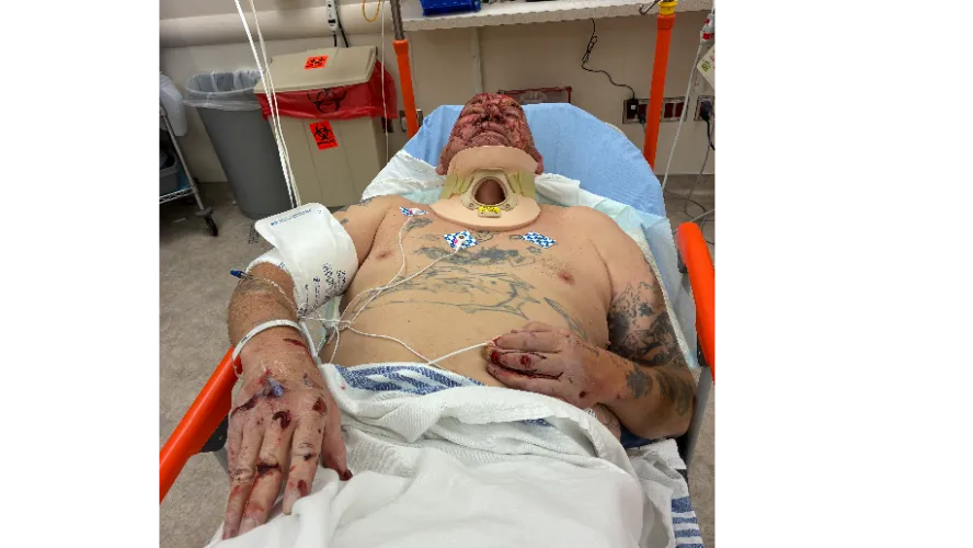 On Saturday, February 28th, shortly after purchasing his bike, Norman was riding on the highway when he encountered a dangerous gap in the roadway that was several inches wide. His motorcycle tire became caught in the gap, causing him to lose control and crash. What should have been a normal ride quickly turned into a life-threatening accident. He was rushed to the trauma unit where doctors worked on him for six hours. Norman suffered a broken shoulder blade, several broken ribs, deep cuts to his head and nose, and a badly injured finger that required twelve stitches. He may also be dealing with a neck injury. Right now Norman says he feels like a Mack truck ran him over and is in a tremendous amount of pain.